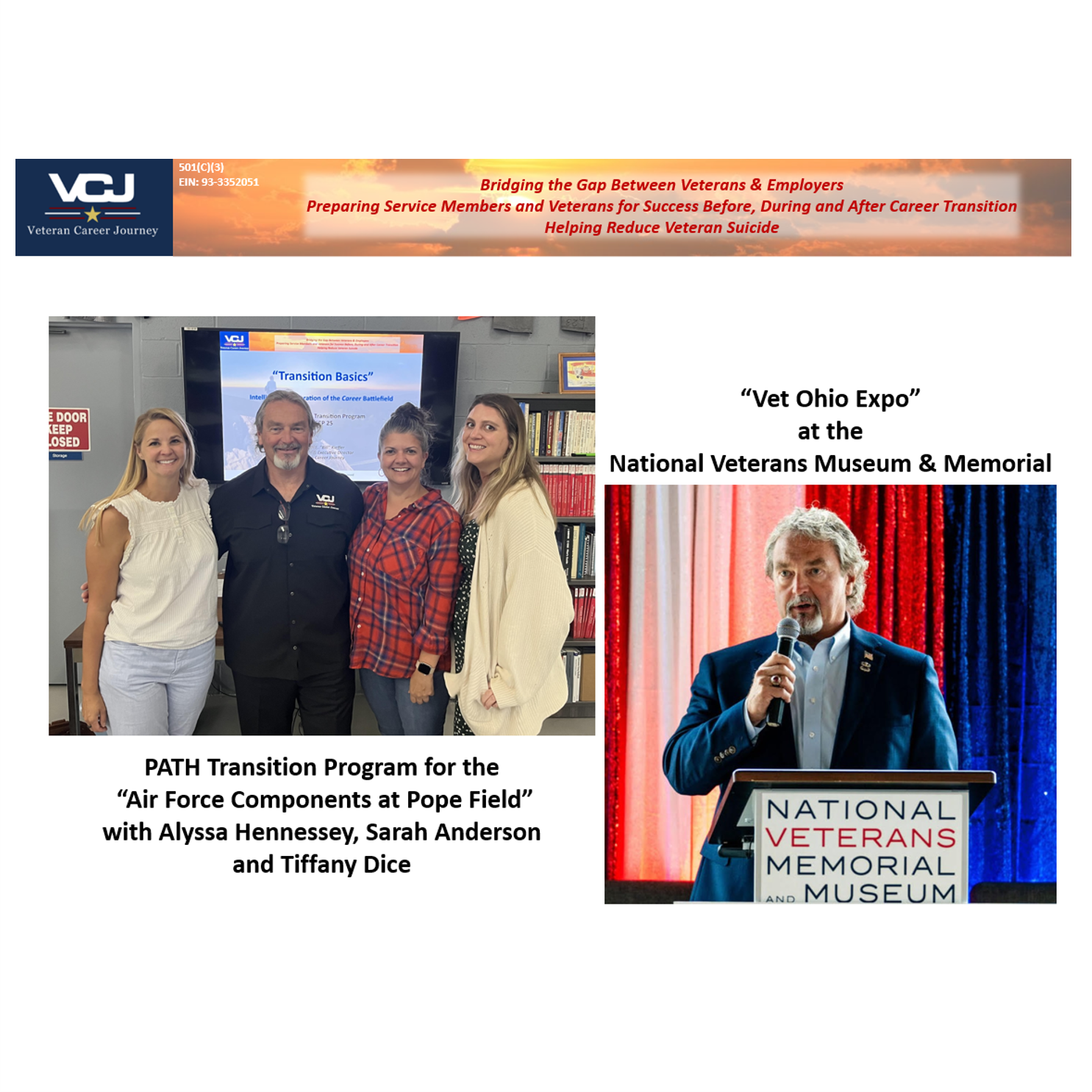 Thanks to all with whom we partner to help VCJ continue our mission to close the employer-veteran culture gap, prepare service members for success before, during and after career transition, and to help reduce veteran suicide.
