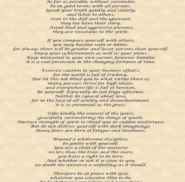 This quiet Sunday morning offered a moment of reflection, and my thoughts turned to Max Ehrmann’s timeless poem, “Desiderata.” Its words, penned in 1927, resonate…