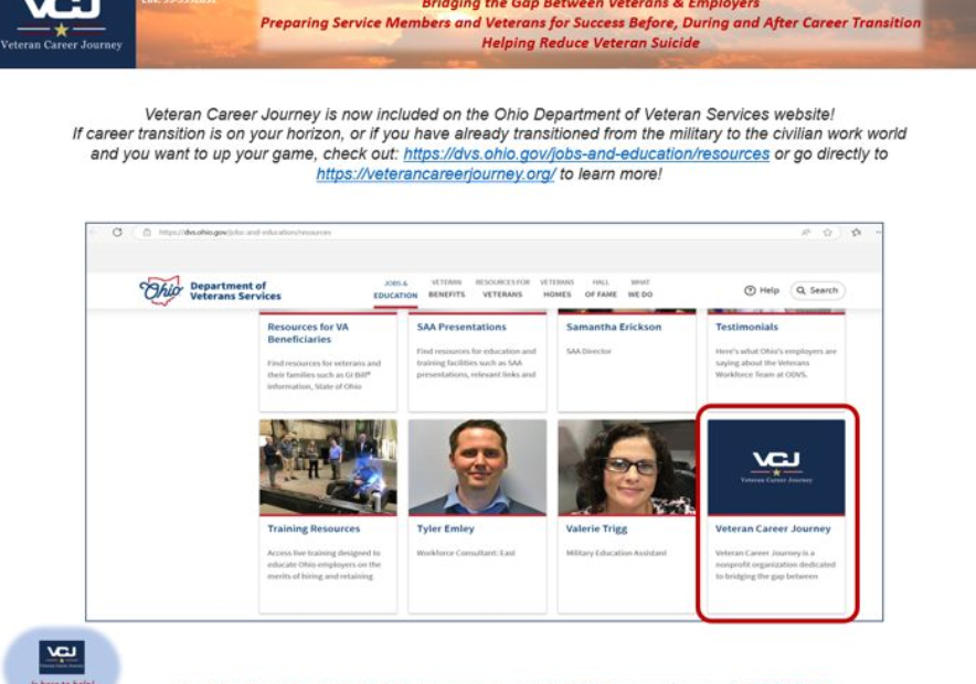 Veteran Career Journey (VCJ) is honored to be recognized and listed as a valuable resource by the Ohio Department of Veteran Services. This acknowledgment underscores…