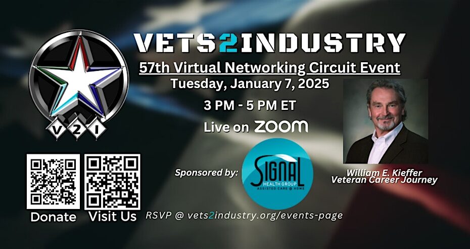 Excited for today’s VETS2INDUSTRY virtual networking event, where our co-founder and executive director William E. “Bill” Kieffer will be sharing our mission and career transition…